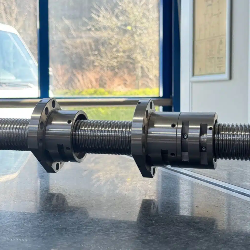 Antes de entrar en los tipos de contacto, vale la pena recordar rápidamente qué es un husillo de bolas. Se trata de un sistema de transmisión de movimiento lineal que convierte el giro en desplazamiento lineal con un mínimo de fricción. Utiliza bolas entre el eje roscado (husillo) y la tuerca para lograr una alta precisión, eficiencia y suavidad en el movimiento.